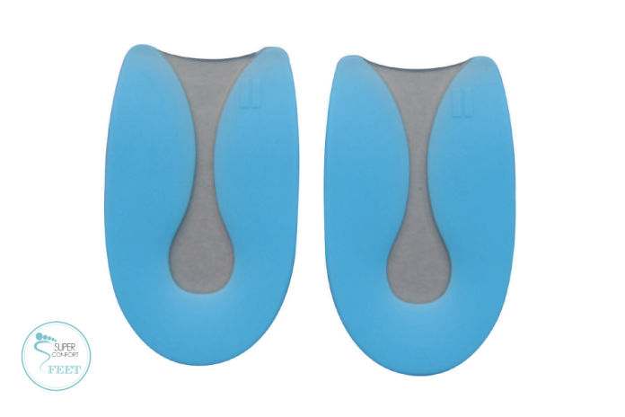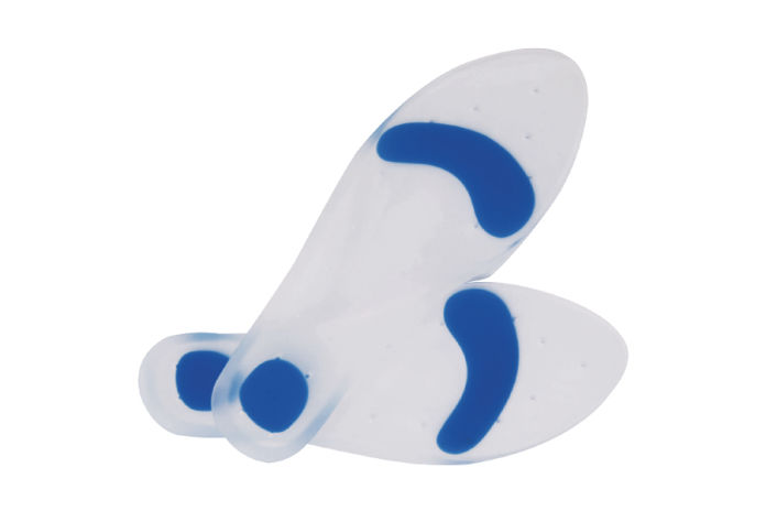 Plantilla en silicona de 3/4 con botón metatarsal y punto azul de descanso en talón. Disminuye el impacto al caminar en artticulacioness de rodillas y al esstar de pie por tiempos prolongados, disminuye la fricción de la planta del pie al caminar brindando confort y descanso.